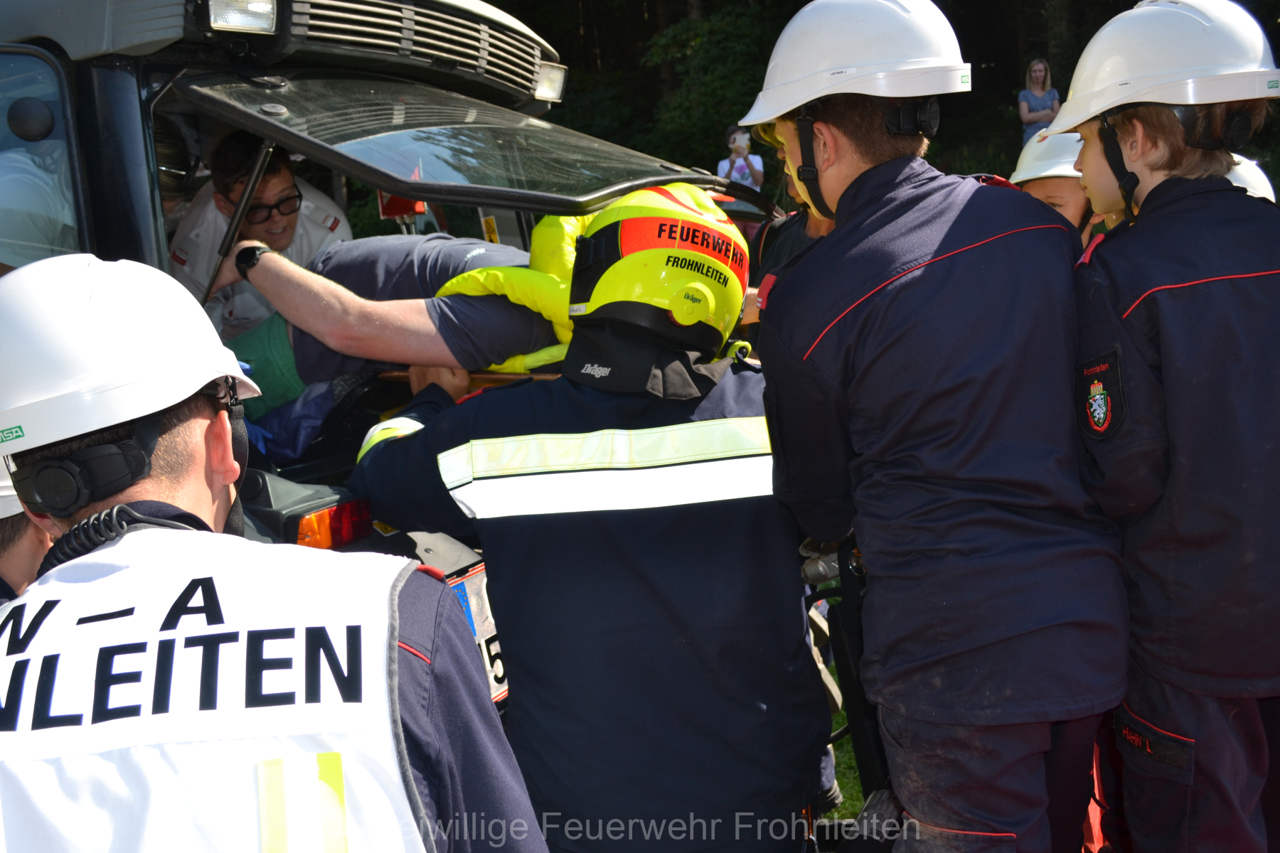 Am Samstag, pünktlich um 08:00 Uhr bezogen 8 Mitglieder der Feuerwehrjugend, aber auch mehrere Jugendbetreuer unser Feuerwehrhaus, um 32 Stunden darin zu verbringen. Natürlich hatte unser Jugendbeauftragter LM d.F. Justin Leindl ein dicht gedrängtes Programm vorbereitet, um den Kids den „Feuerwehralltag“ näher bringen zu können. In diesen 32-Stunden mussten mehrere Übungseinsätze abgearbeitet werden wie z.B. ein Kleinbrand, ein Verkehrsunfall mit mehreren Fahrzeugen und eingeklemmten Personen, ein abgestürzter Arbeiter in einer Montagegrube, eine Suchaktion sowie eine eingeklemmte Person unter einem Traktor, aber auch Spiel und Spaß sowie Schulungen durften dabei nicht fehlen. Zusammen mit der Rot-Kreuz Jugend Frohnleiten wurden diese, mit Unterstützung von mehreren erfahrenen und aktiven Mitgliedern unserer Feuerwehr erfolgreich gemeistert. Zum Abschluss am Sonntag gab es noch eine Wasserdienstübung, wo die Kids den Wasserdienst der Freiwilligen Feuerwehr Frohnleiten näher kennen lernen durften. Natürlich gab es dabei auch eine fahrt mit unserem K-Boot sowie JET-Boot!