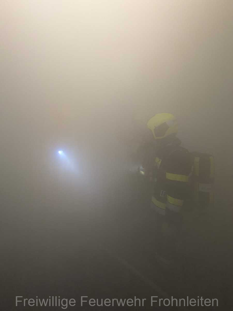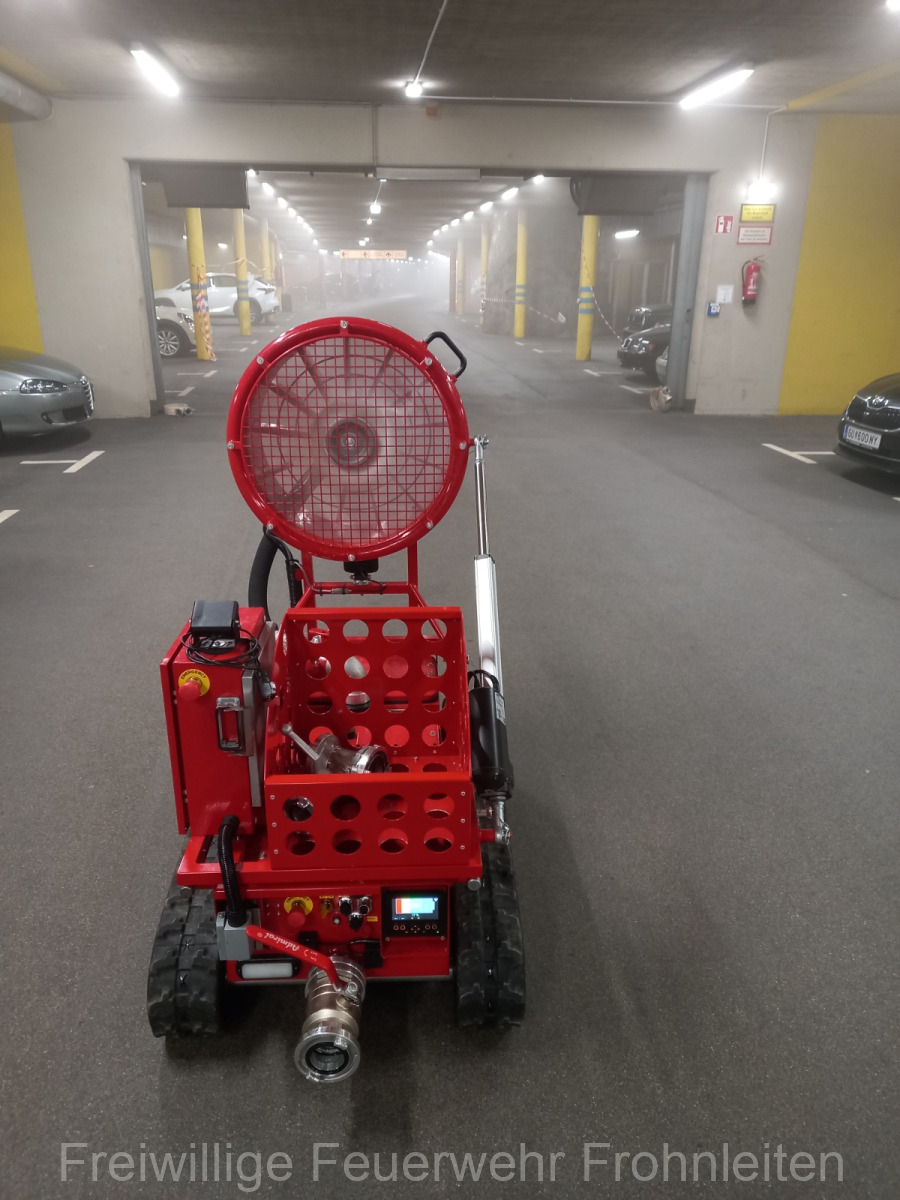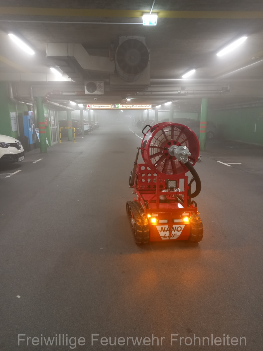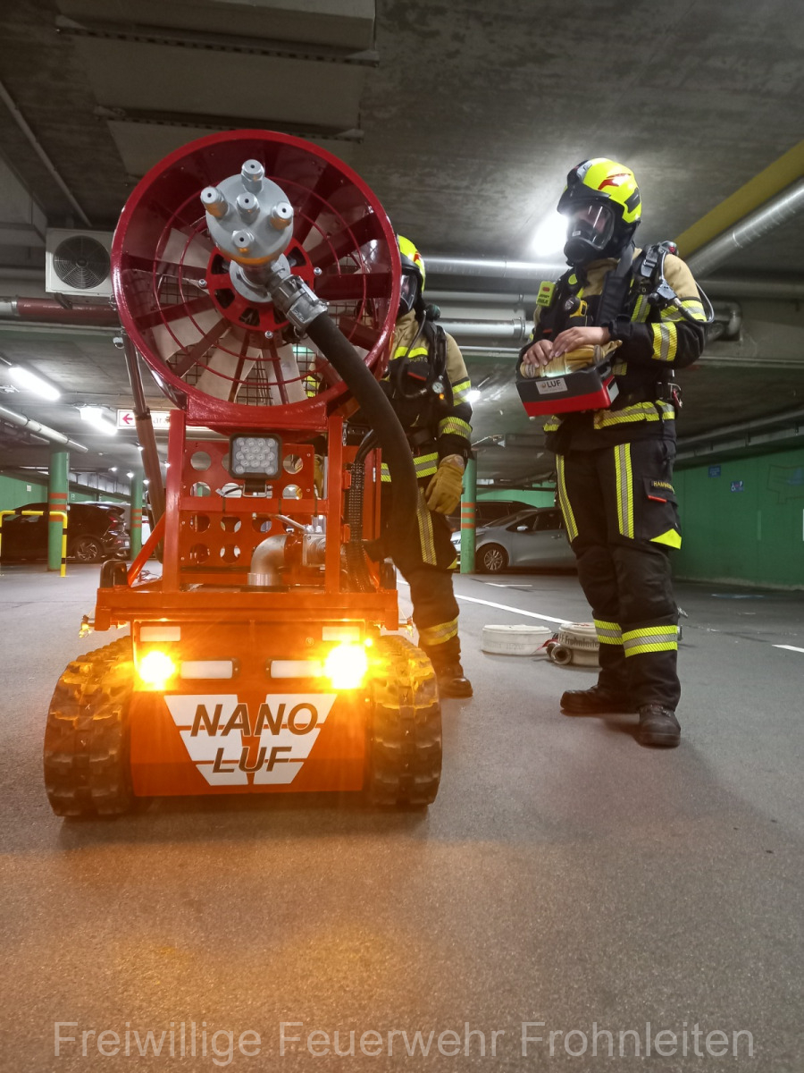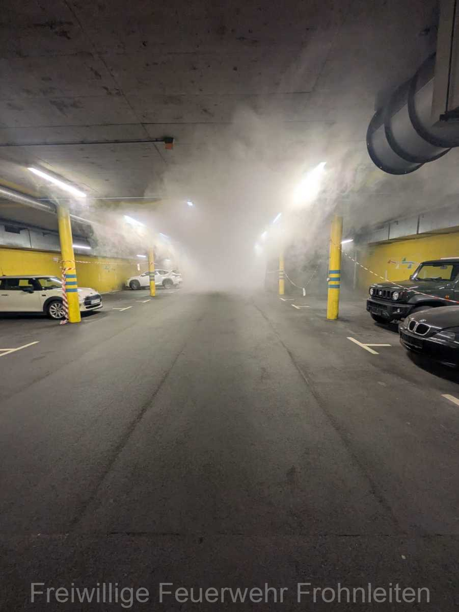 Die Freiwillige Feuerwehr Frohnleiten-Stadt führte am vergangen Samstag ihre alljährliche Abschlussübung durch. Der erste Einsatzbefehl lautete “Brandmeldeanlagenalarm Tiefgarage Hauptplatz”, ein alltäglicher Alarm für die Mitglieder der Feuerwehr. Nach der Erkundung durch den Einsatzleiter OLM Valentin Weingerl stellte sich schnell heraus, dass es sich um einen PKW Brand in der Tiefgarage handelt. Ein Szenario, vor dem die Mitglieder großen Respekt haben, da ja bekanntlich Brandrauch und Hitze nicht abziehen können. So wurde im Rahmen der Übung, die Feuerwehren Röthelstein, Mayr-Melnhof, Peggau und Deutschfeistritz nachalarmiert. Für die Führungsunterstützung wurde das Einsatzleitfahrzeug des BFV Graz-Umgebung betrieben von der Feuerwehr Seiersberg nachalarmiert. Für die taktische Ventilation wurde erstmalig das LUF Nano der Feuerwehr Werndorf hinzugezogen. Mit diesen neu angeschafften Gerät ist es möglich, große Rauchmengen zu bewegen. Der LKW mit Atemluftkompressor Steinberg-Rohrbach unterstütze die Feuerwehren durch das Aufüllen der Atemluftflaschen. Beübt wurden die Maßnahmen Löschen, Suchen und Retten und die Sicherung der Schlüsselstellen. Die Übungsziele wurden auf die Tiefgaragentaktik des BFV Graz-Umgebung ausgelegt und wurden von allen Übungsteilnehmern erfüllt. Das Rote Kreuz Frohnleiten beteiligte sich auch bei der Übung. So wurden vom ÖRK die Verletztendarsteller geschminkt und während der Übung wurde eine gemeinsame Einsatzleitung betrieben und eine Sanitätshilfsstelle aufgebaut.