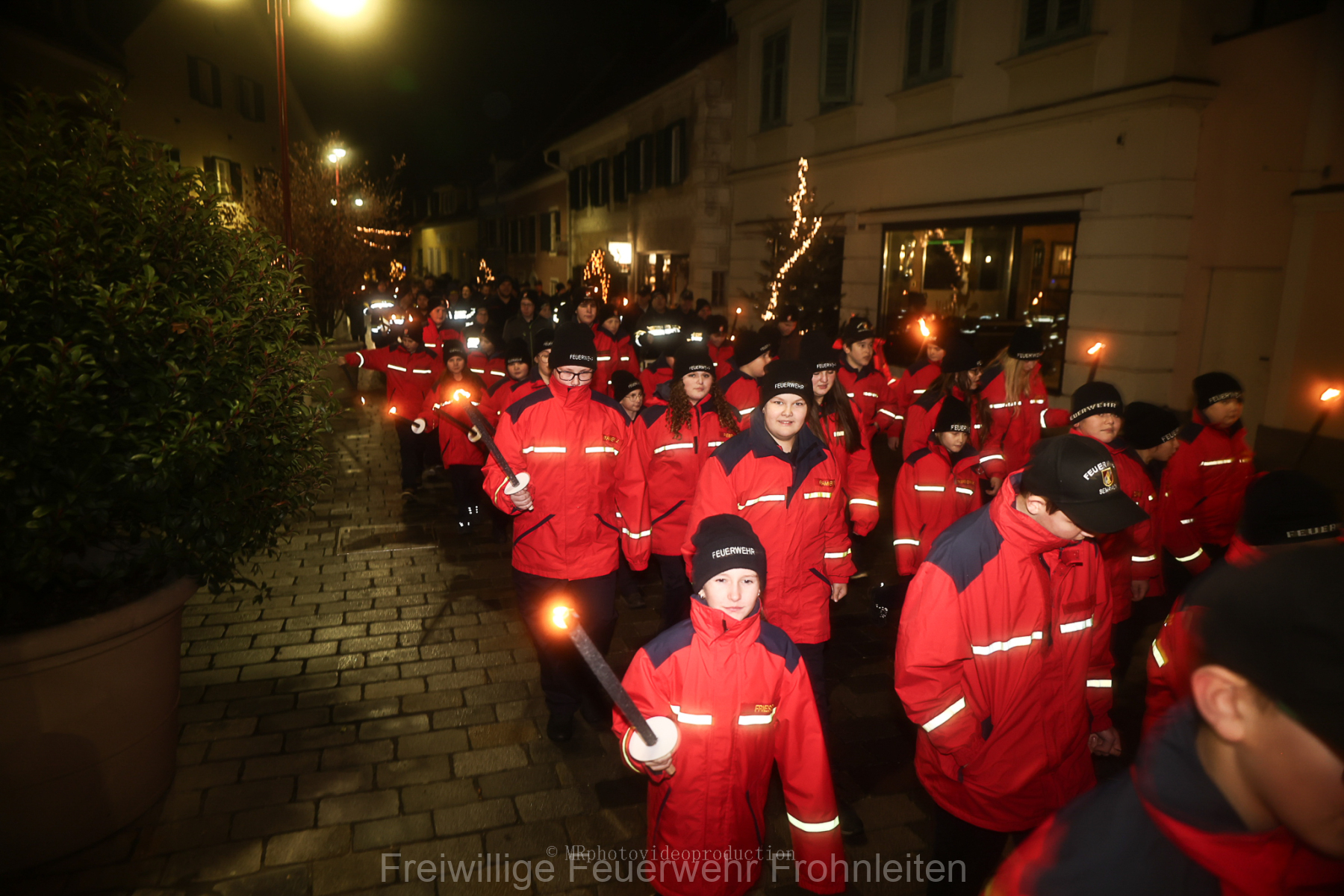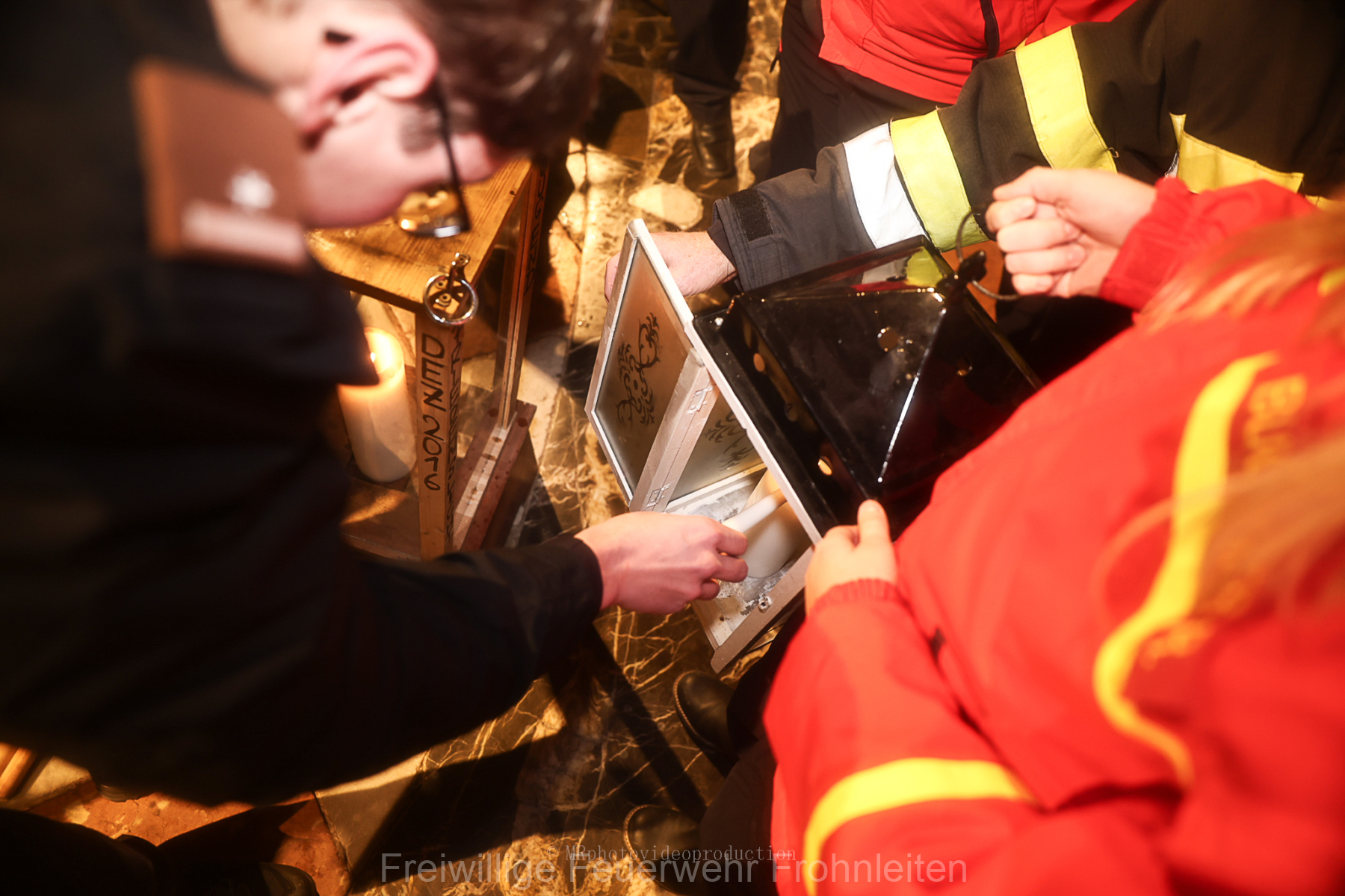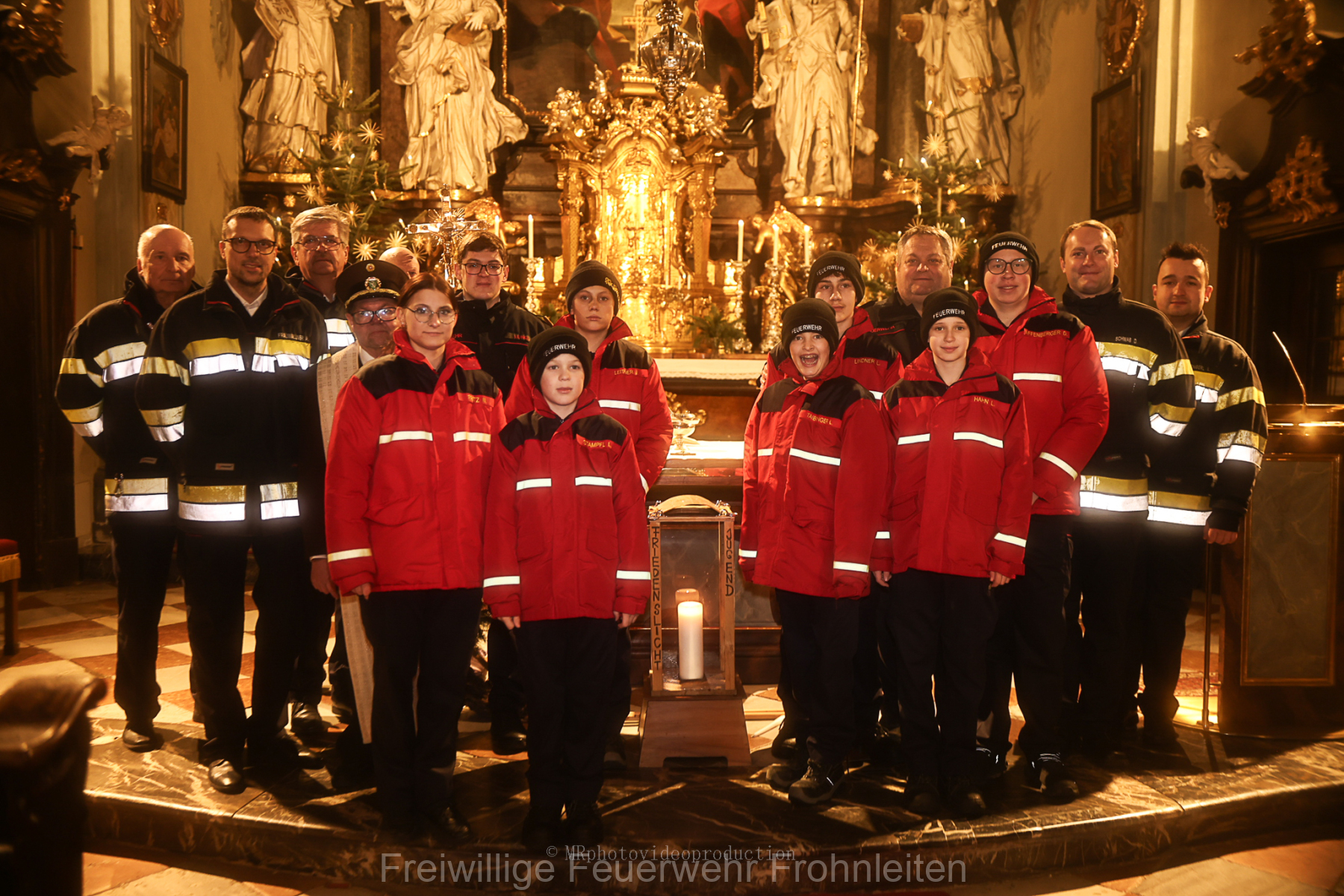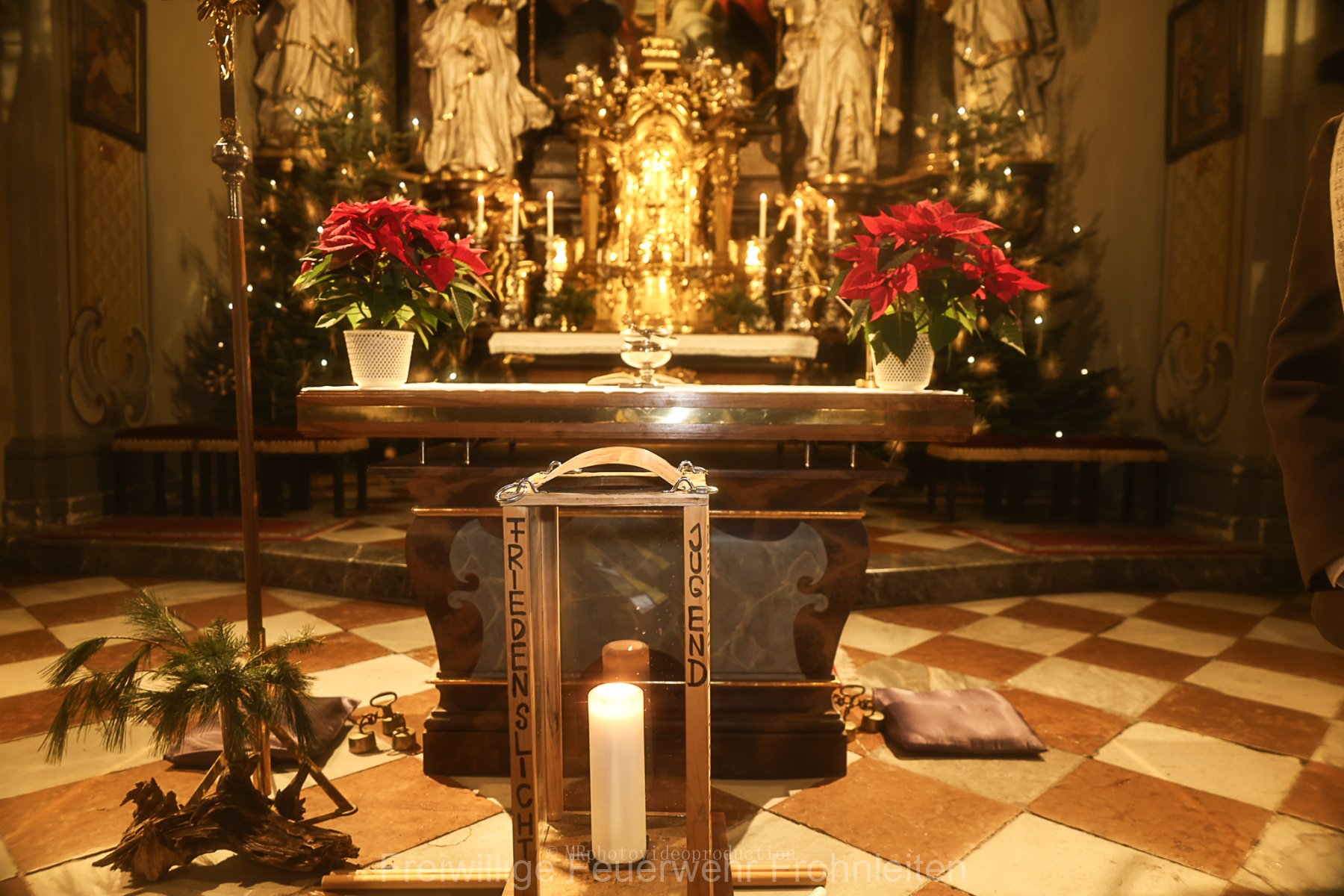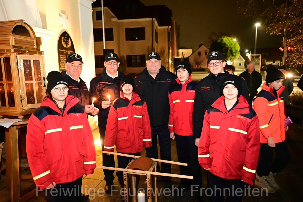 Heuer hatten die Jugendlichen der Freiwilligen Feuerwehr Frohnleiten die Ehre das Friedenslicht am Montag dem 22.12.2025 in Raaba beim Bereichsfeuerwehrverband Graz-Umgebung aus den Händen von Bereichsfeuerwehrkommandant LFR Gernot Rieger sowie Bereichsjugendbeauftragten OBI d.F. Christian Radler abholen zu dürfen. Am Dienstag, 23.12.2025 wurde daraus eine sehr gelungene Veranstaltung in Frohnleiten organsiert, wo rund 70 Jugendliche und 55 Aktive Kamerad:innen sowie Feuerwehrsenioren Aufstellung bei der ehem. Bäckerei Viertler/Kohlbacher nahmen, um gemeinsam mit zahlreichen Fackeln zur Pfarrkirche Frohnleiten zu marschieren. In der Pfarrkirche Frohnleiten hielt Stadtpfarrer FKUR Mag. Ronald Ruthofer, nach kurzen Worten des Abschnittsfeuerwehrkommandanten ABI Andreas Reiter von der Freiwilligen Feuerwehr Deutschfeistritz eine kurze Andacht und erläuterte den Jugendlichen den Sinn des Friedenslichtes. Danach wurden alle beteiligten noch in den Pfarrsaal zu einer kleinen Agape eingeladen. Anschließend wird das Friedenslicht von jeder Feuerwehr in ihre Rüsthäuser verbracht und dort von vielen an die Bevölkerung ausgegeben.