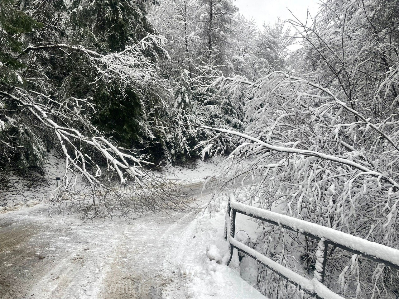 Mehrere umgestürzte Bäume nach Schneefall