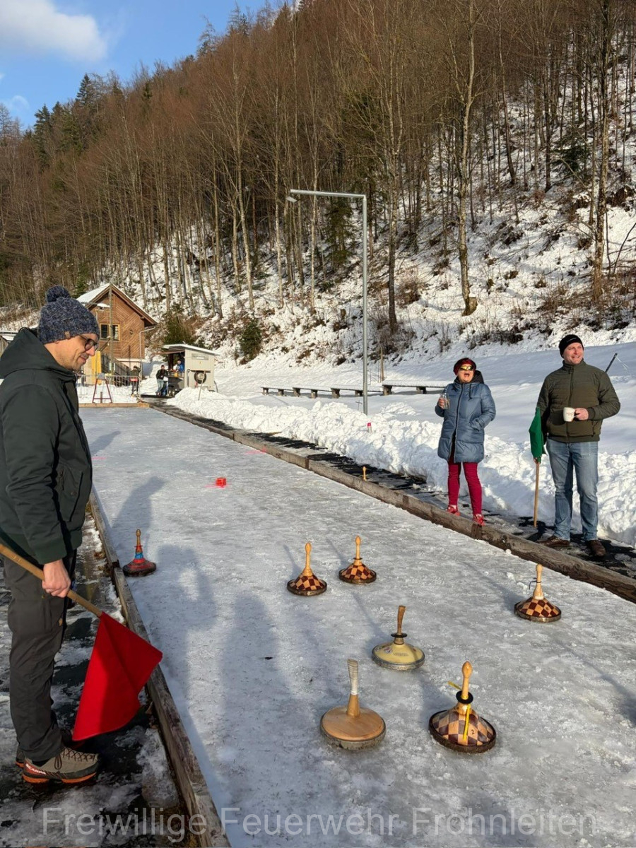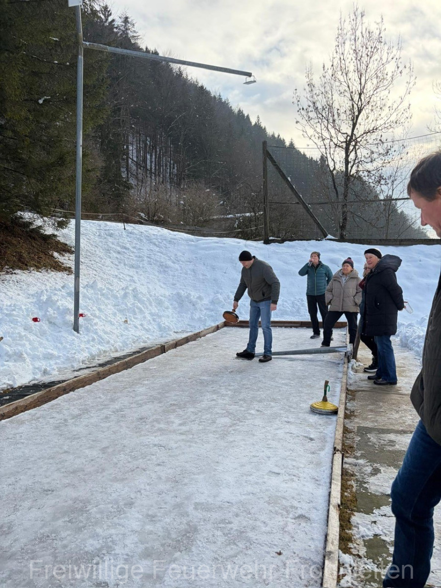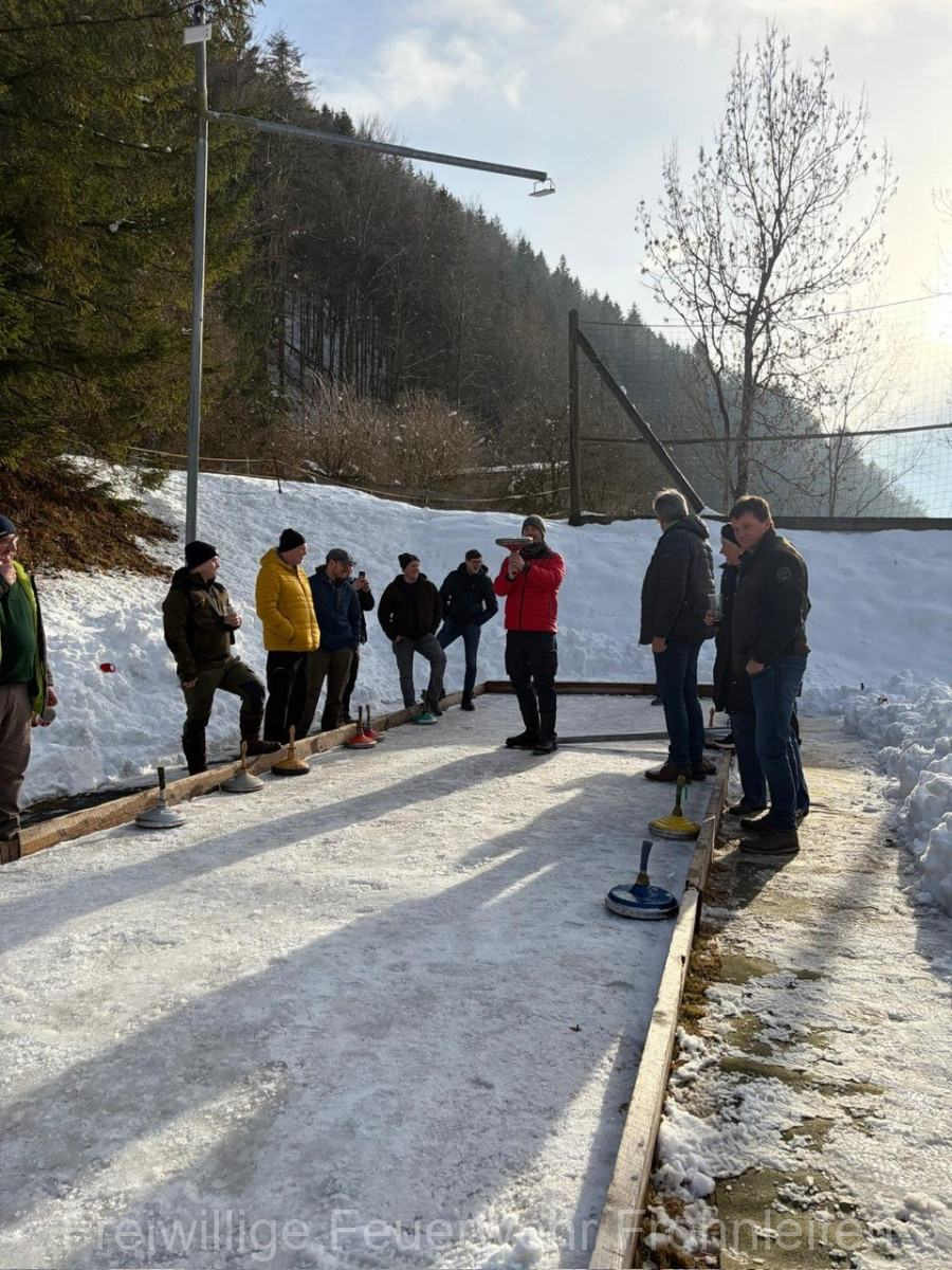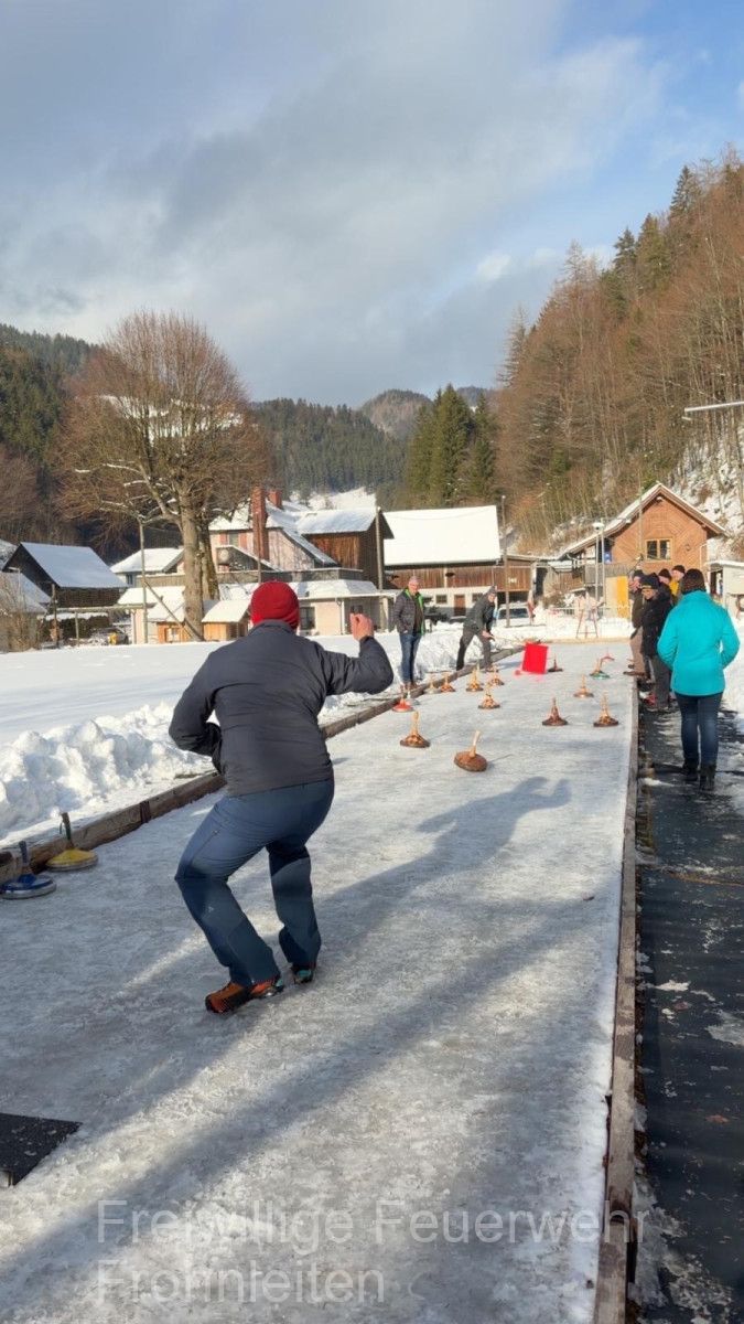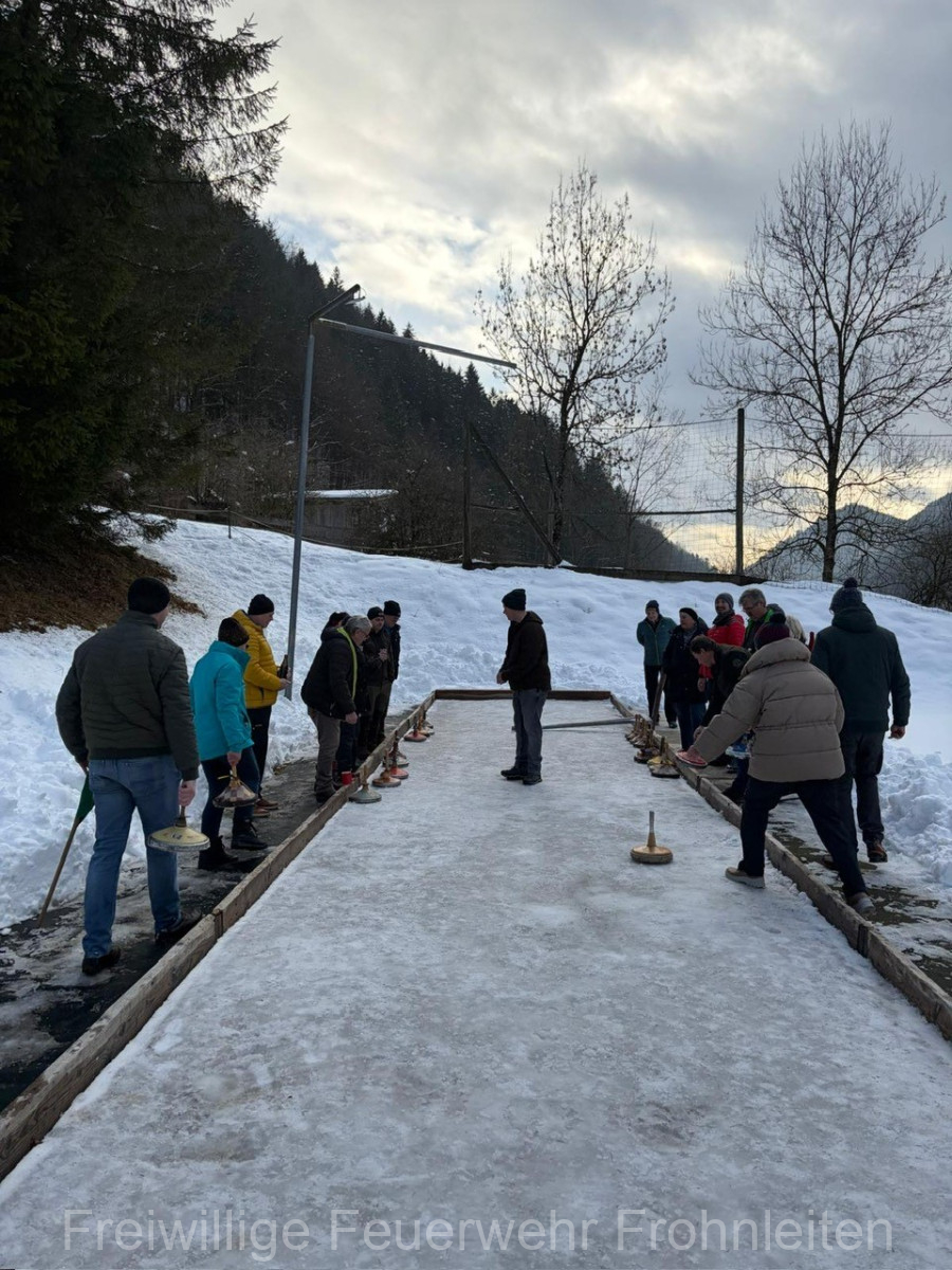 Am Samstag, den 21.02.2026 führte die Freiwillige Feuerwehr Frohnleiten mit den Kamerad:innen inklusive deren Lebensgefährt:innen das jährliche kameradschaftliche Knödelschießen auf der Anlage des SV Tyrnau-Nechnitz durch. Bei perfekten Wetterbedingungen, aber eher bescheidenen Eisbahntemperaturen starteten die beiden “Moar”, also die Spielführer mit dem Duell, bei dem natürlich der Spaß im Vordergrund stand. Ausgespielt wurde sich hierbei der obligatorische Bauernschmaus, die Getränke sowie der Schnaps den wir später in kameradschaftlicher Atmosphäre genießen durften!