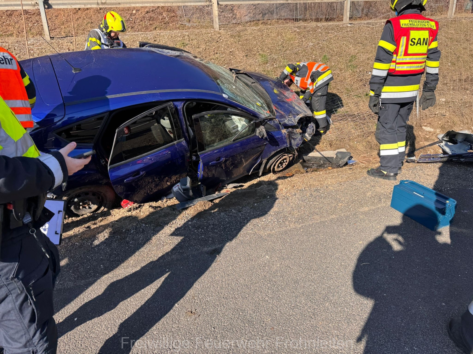 Ein Kraftfahrzeuglenker kam mit seinem PKW in einer Linkskurve aus bislang ungeklärter Ursache von der Fahrbahn ab, überschlug sich im angrenzenden Grünstreifen und kam dort zum stehen. Der Kraftfahrzeuglenker konnte sich, sowie auch sein Beifahrer eigenständig aus dem Wrack befreien. Glücklicherweise wurden beide Insassen nur leicht verletzt und wurden von einem First-Responder des Roten Kreuzes erstversorgt. Die Freiwillige Feuerwehr Röthelstein übernahm als ersteintreffende Feuerwehr die Absicherung der Unfallstelle sowie den Aufbau eines Brandschutzes. Die Freiwillige Feuerwehr Frohnleiten übernahm die Einsatzleitung, unterstützte beim Abtransport des Unfallfahrzeuges sowie bei den restlichen Aufräumarbeiten.