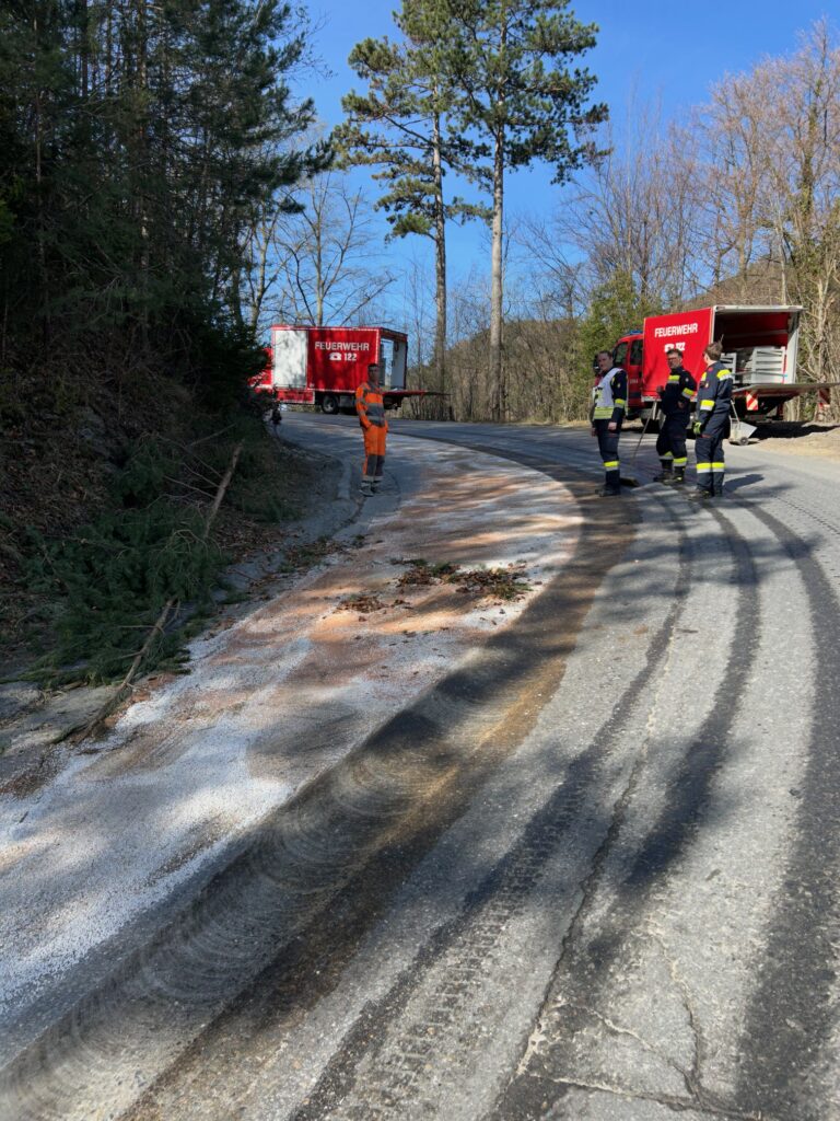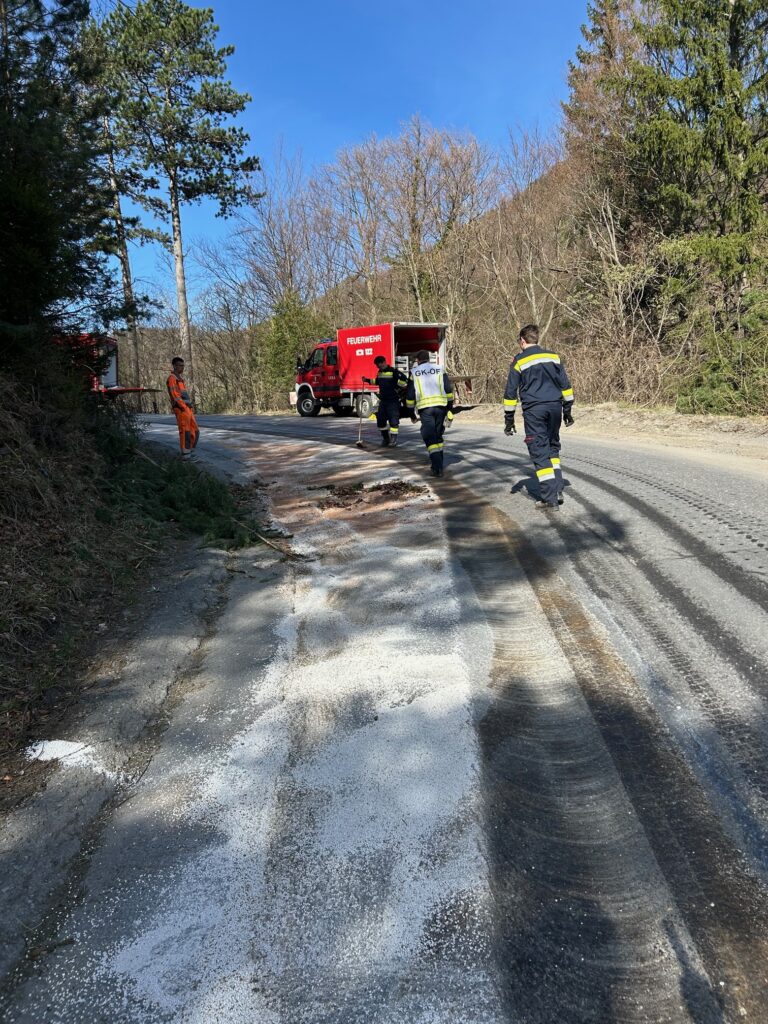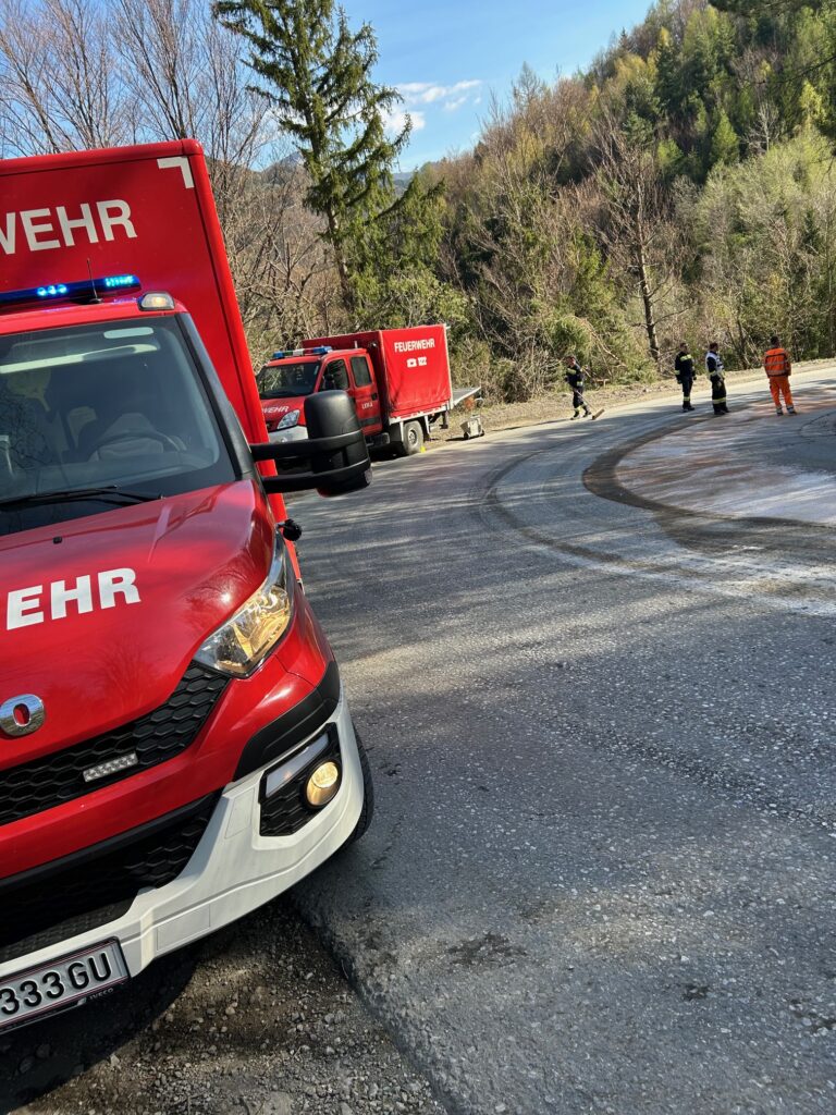Aus bisher ungeklärter Ursache wurde die Freiwillige Feuerwehr Frohnleiten zu einem Treibstoffaustritt in den Ortsteil Schrems alarmiert. Die eingesetzten Kräfte trugen Bindemittel auf und reinigten im Anschluss zusammen mit einer Kehrmaschine die Straße. Nach einer Einsatzzeit von rund 1,5 Stunden konnten alle Einheiten wieder in das Rüsthaus einrücken und die Einsatzbereitschaft wiederherstellen.