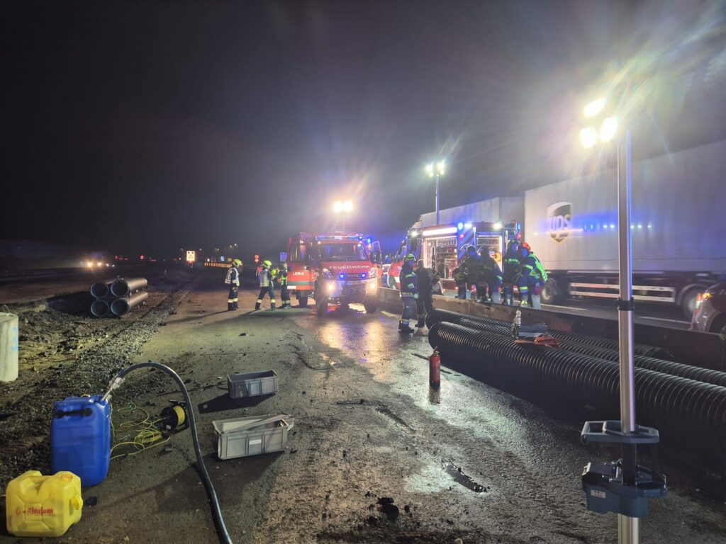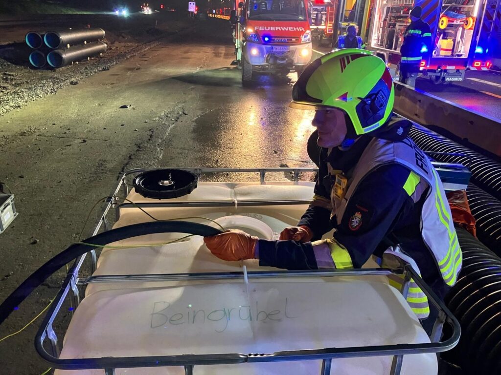 Aus bisher ungeklärter Ursache kam ein LKW im Baustellenbereich von der Fahrbahn ab, wobei es zu einem erhöhten Sachschaden sowie Austritt von Betriebsmitteln auf ca. 200 Meter kam. Die mitalarmierte FF Frohnleiten fuhr laut Alarmplan mit dem Ölschadensfahrzeug und Lastkraftwagen-Allrad zur Einsatzstelle und unterstütze die vor Ort gewesenen Einsatzorganisationen bei den Binde-, Auffang- und Umpumparbeiten des ausgetretenen Diesels. Nach einer nächtlichen Einsatzzeit von knapp 5 Stunden konnten alle eingesetzten Kräfte wieder einrücken und die Einsatzbereitschaft wiederherstellen.